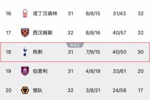 跌入降级区!热刺反超西汉姆成为最新降级热门,降级概率达39%